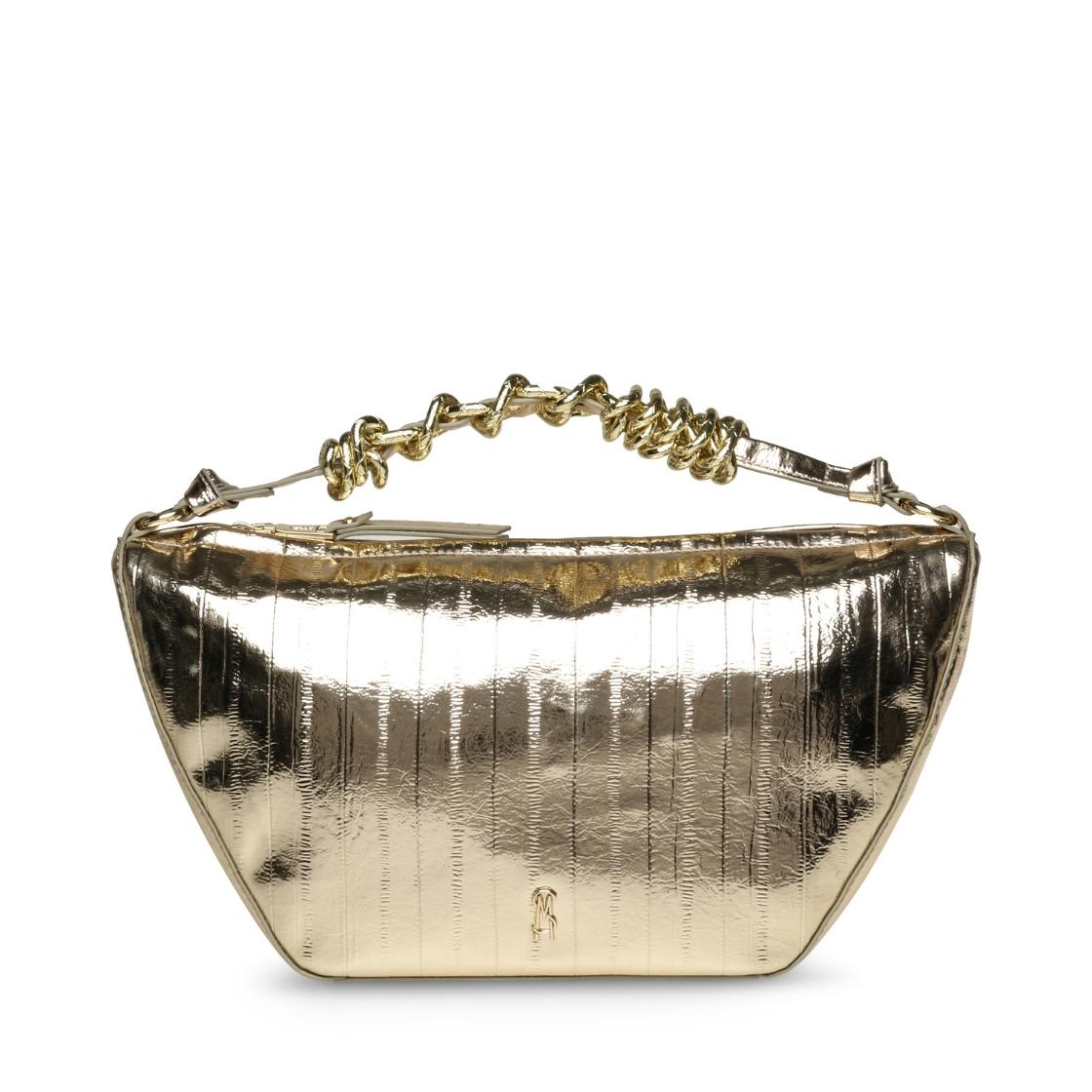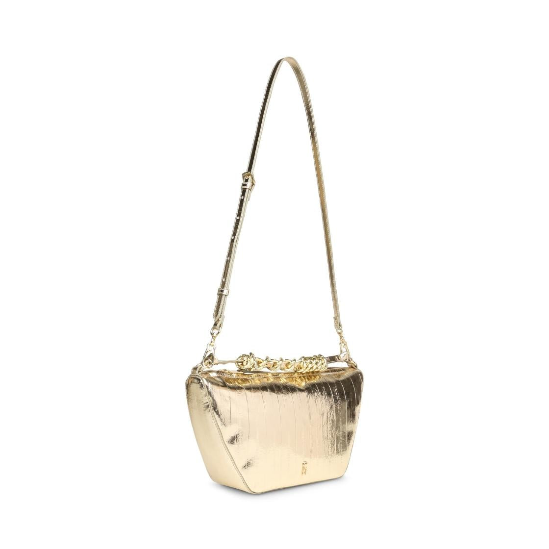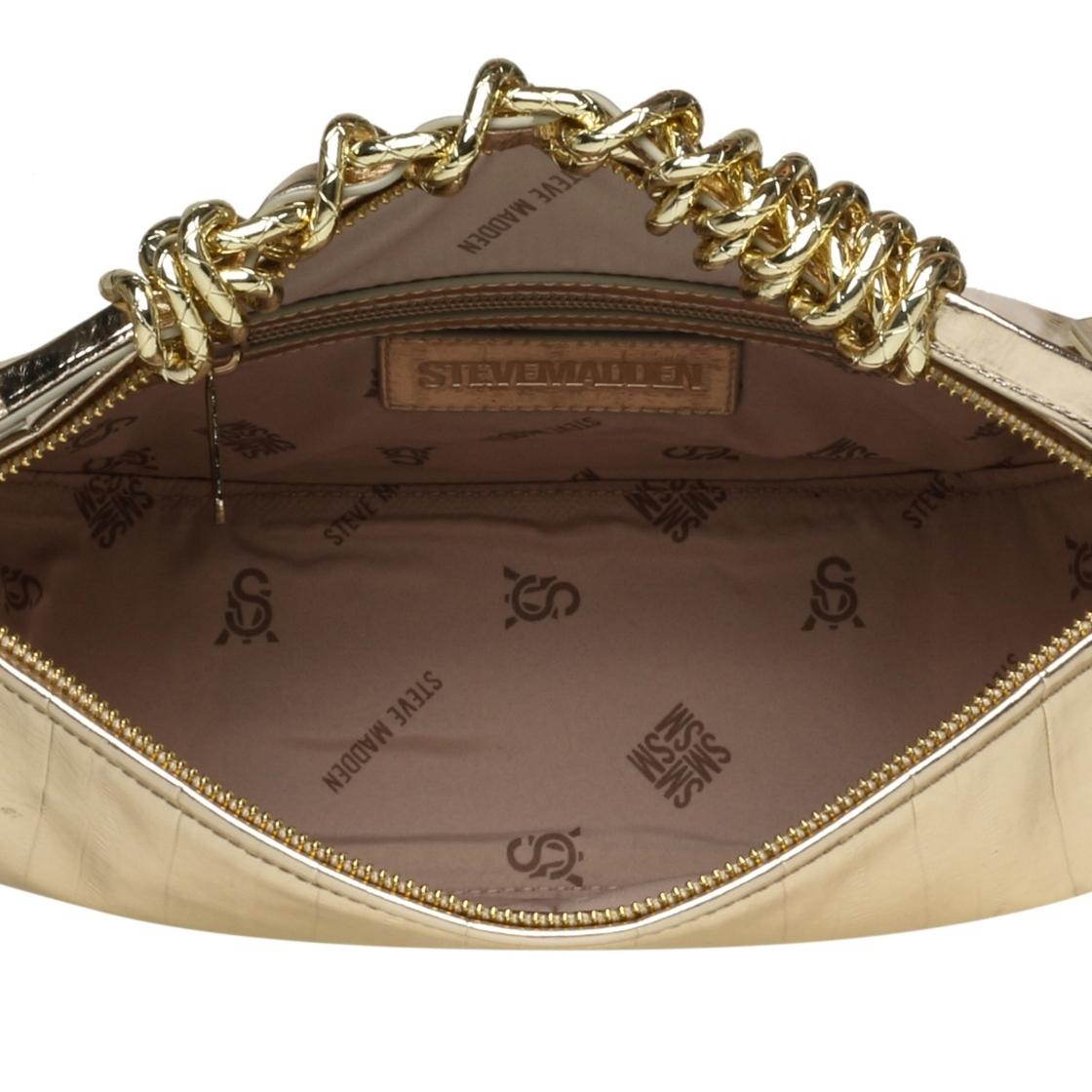 Bbrio ilumina cualquier look con su acabado metálico que aporta un brillo llamativo y lleno de personalidad. Este bolso con silueta moderna destaca por líneas que equilibran estilo y practicidad, mientras el asa con cadena retorcida añade un toque distintivo que la convierte en protagonista. Espaciosa y versátil, es ideal para llevar lo esencial tanto en planes de día como en noches especiales. Un accesorio statement que eleva cualquier outfit con glamour y actitud.