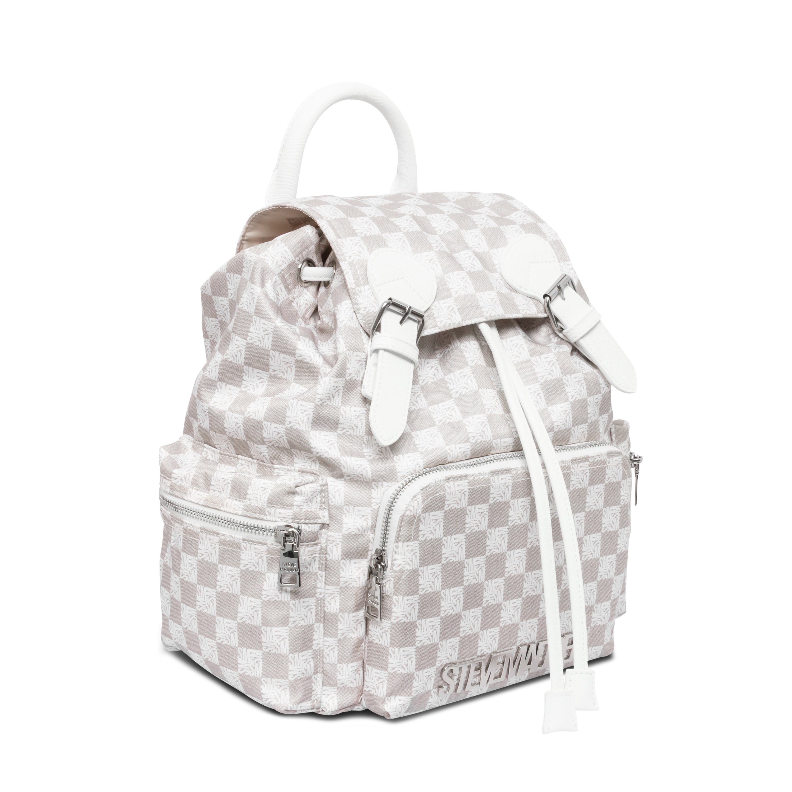 La mochila perfecta para quienes aman combinar estilo y funcionalidad. Bpack y su diseño con patrón de cuadros en tonos neutros le da un aire sofisticado y versátil, ideal para cualquier outfit. Cuenta con compartimentos amplios, cierres metálicos y un sistema de ajuste con cordón y broches que la hacen práctica y segura. Ya sea para la universidad, el trabajo o tus planes del día, esta mochila eleva tu look con el sello moderno de Steve Madden.
