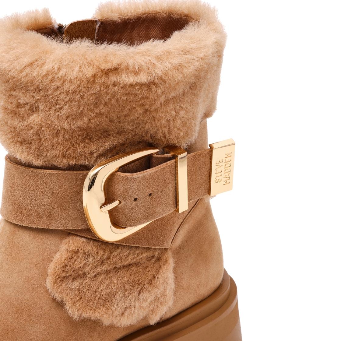 La fuerza de los LODGE TAN SUEDE está en su capacidad para ser un comodín estético que permite experimentar con distintos largos, texturas y colores. Cada combinación mantiene la esencia de Steve Madden: estilo sin sacrificar confort, y actitud en cada paso que das. Esta temporada de otoño/invierno luce increíble con el estilo de estas botas con peluche para mujer.