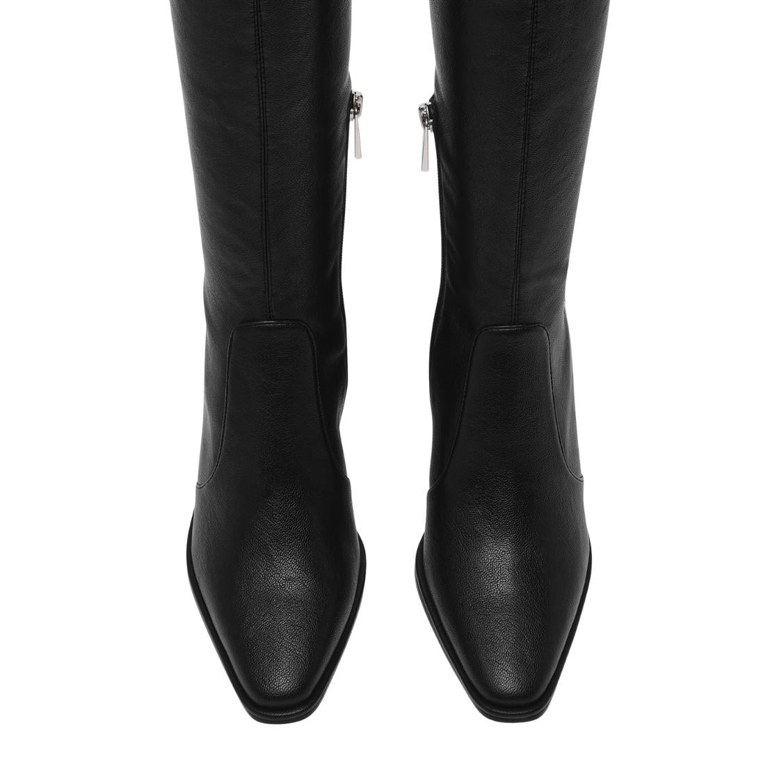 Un guiño moderno a los 70s. Las botas Walk-Off reinterpretan la elegancia retro con un diseño alto, minimalista y sofisticado. Su silueta estructurada, combinada con un tacón ancho y punta alargada, evoca el glamour atemporal de los años setenta. Una pieza clave que eleva cualquier outfit y lo convierte en un look poderoso y estilizado.