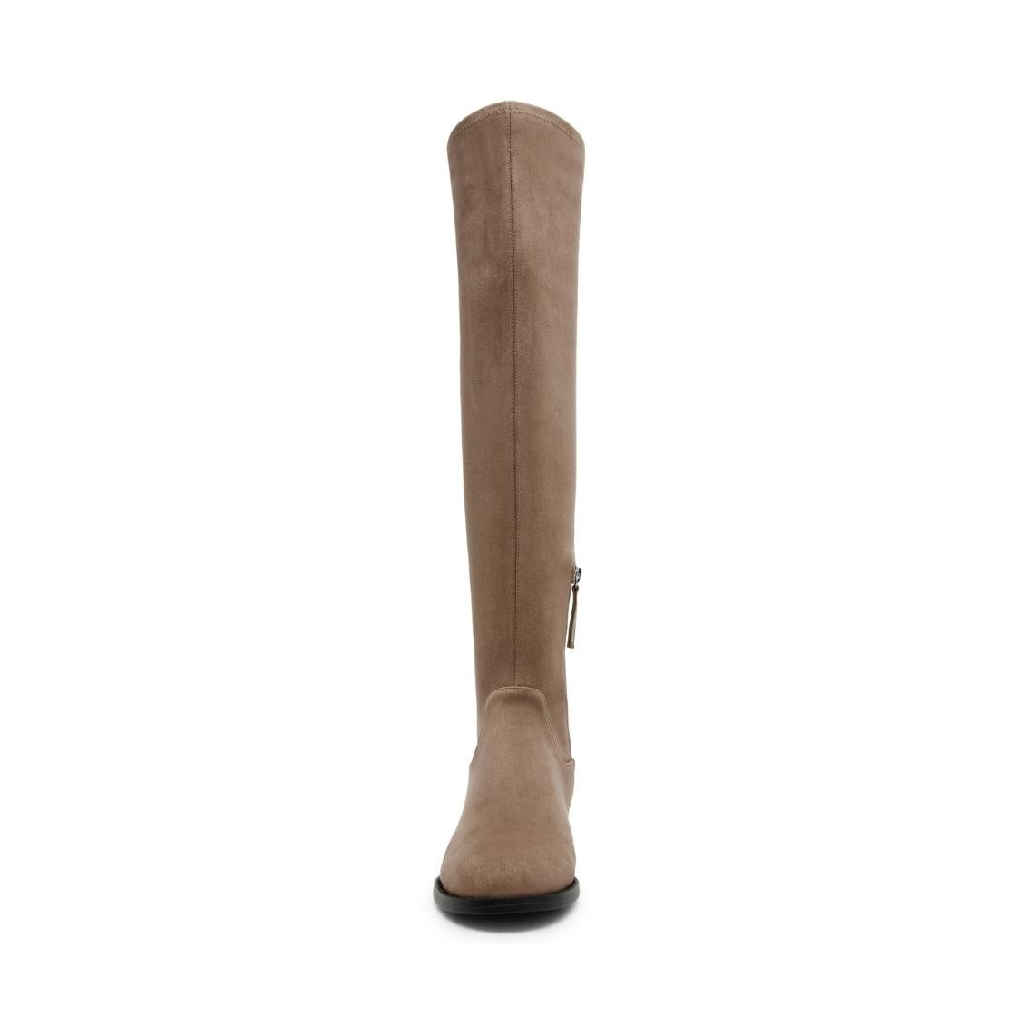 El acabado en gamuza sintética de las XRAY TAUPE/TAUPE les da suavidad visual y un toque cálido que hace que cualquier look se transforme en algo mucho más expresivo. La caña de 52 cm estiliza la figura y da esa sensación de lujo silencioso que distingue a un calzado que fue diseñado para marcar tendencia. Los detalles en el lazo trasero le da un aire romántico, mientras que el cierre lateral te asegura practicidad para el día a día. Steve Madden pensó en un calzado capaz de adaptarse a distintos contextos, siempre con la seguridad de que no pasará desapercibido.